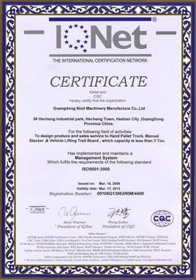 公司先后獲得了ISO9001質量管理體系認證,歐洲CE/GS認證,SGS國際認證服務公司認證審核,國家質監(jiān)總局頒發(fā)的特種設備制造許可證,廣東省高新技術企業(yè)認證,廣東省工程技術研究中心等。