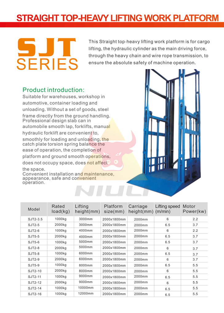 This Straight top-heavy lifting work platform is for cargo lifting,the hydraulic cylinder as the main driving