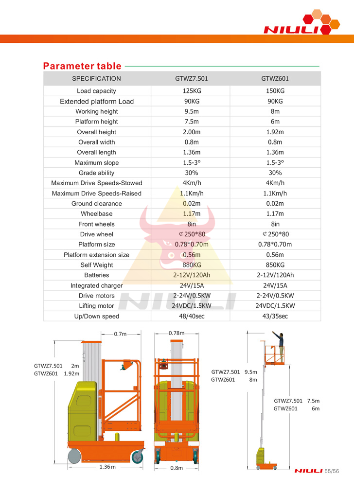 | Drive motors(V/KW) | 2-24/0.5 | 2-24/0.5 |